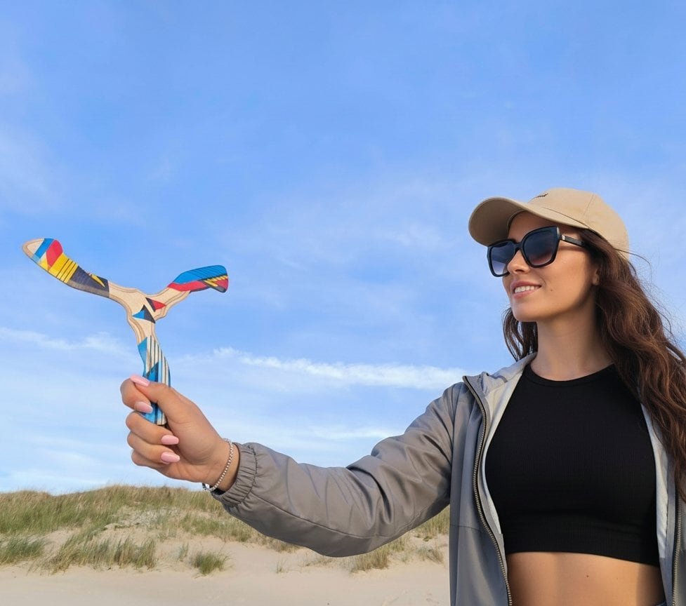 - Saugus: Sveria tik 35 g., todėl maža tikimybė svaidant bumerangą užsigauti ar užgauti kitus.
